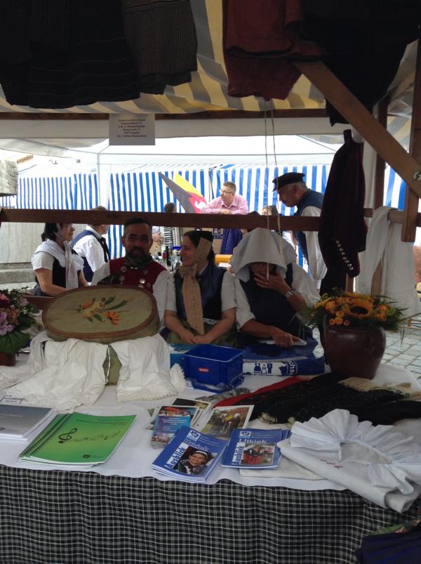 A very large choice of Tracht was offered in Greding, beginning with hand-sewn shoes over knitted dress jackets, woven Dirndl materials from Prien am Chiemsee, beautiful hand-knitted woolen gloves embellished with small beads, leather trousers, vintage Dirndl and much more. Even the blue-dyers from Fredelsloh were there, and I was so happy to see Dietlinde Schütte with her husband once again.