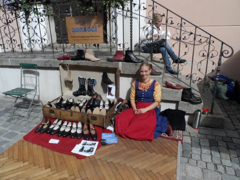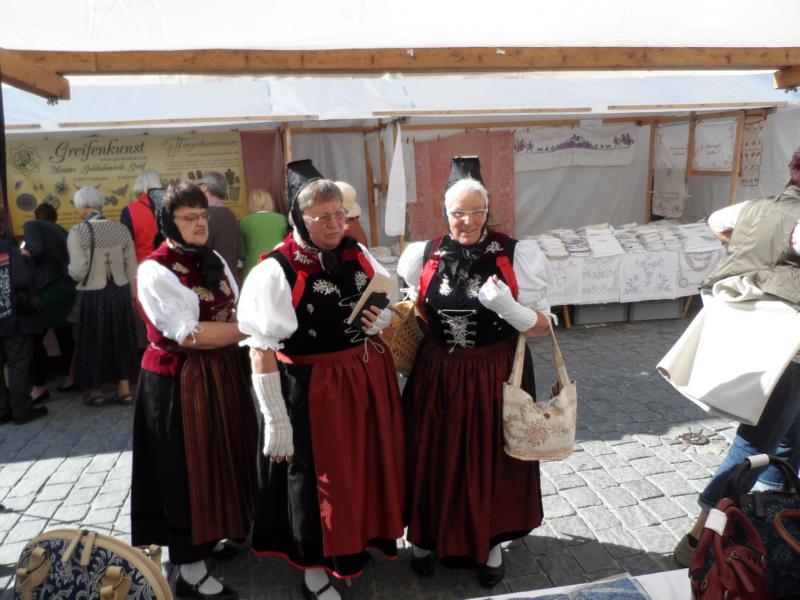 In Greding wurde wirklich sehr viel zum Thema Trachten angeboten, angefangen mit handgenähten Schuhen über gestrickte Trachtenjacken, in Prien am Chiemsee gewebte Dirndlstoffe, wunderschöne handgestrickte Wollhandschuhe mit kleinen Perlen ausgeschmückt, Lederhosen, Vintage Dirndl und Trachtensachen und vieles mehr. Es war sogar auch echter Blaudruck aus Fredelsloh dabei, ich habe mich sehr gefreut, die Frau Dietlinde Schütte mit ihrem Mann wieder einmal gesehen zu haben.