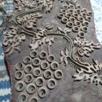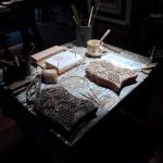 As already mentioned, I recently visited a blue-dye exhibition at the Museum in Jilemnice CZ. There I met two very congenial, and very importantly for all Blue Dyers in the Czech Republic, the two remaining printing block makers. They invited me to Kuks, where they run a museum of Baroque prints with a blue-dye workshop. (Rentz’s Museum of Baroque Print in Kuks). I finally visited the gentlemen there. Milan Bartos and Jaroslav Plucha, with a lot of blood, sweat and tears, restore especially the older and slightly damaged blocks of the blue-dyers. Sometimes they have to restore one or the other model from scratch. I admire their work very much because they have to be as precise as a watchmaker or violin maker. You must have a talent or inherit it, to do this filligrane work, as Milan Bartos whose grandfather was also formerly a print block maker. Again and again I realize how labour-intensive hand work is, and due to cheap goods from Asia, many of us have forgotten, that this work costs a lot of money.