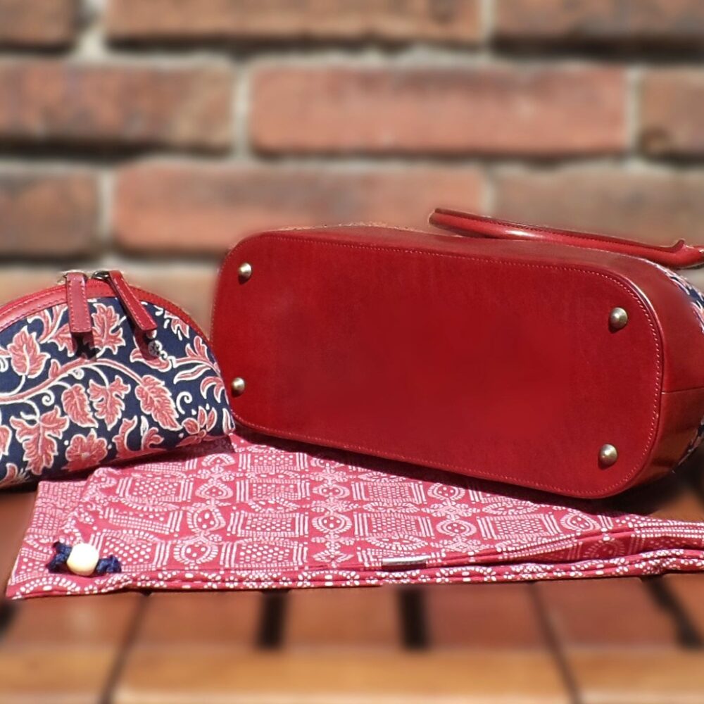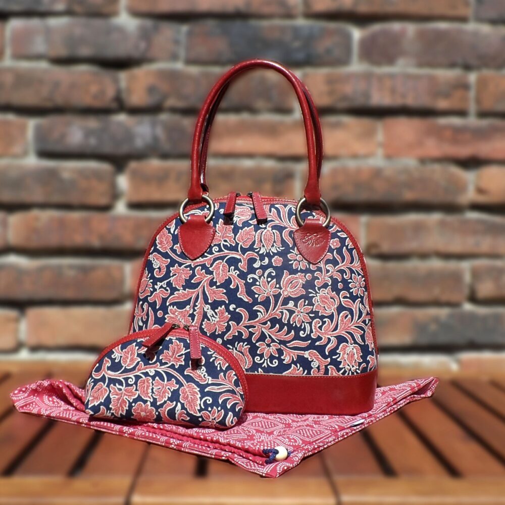 Edle Schultertasche für Individualistinnen mit einem traditionell handbedruckten Stoffmuster aus der Heimat